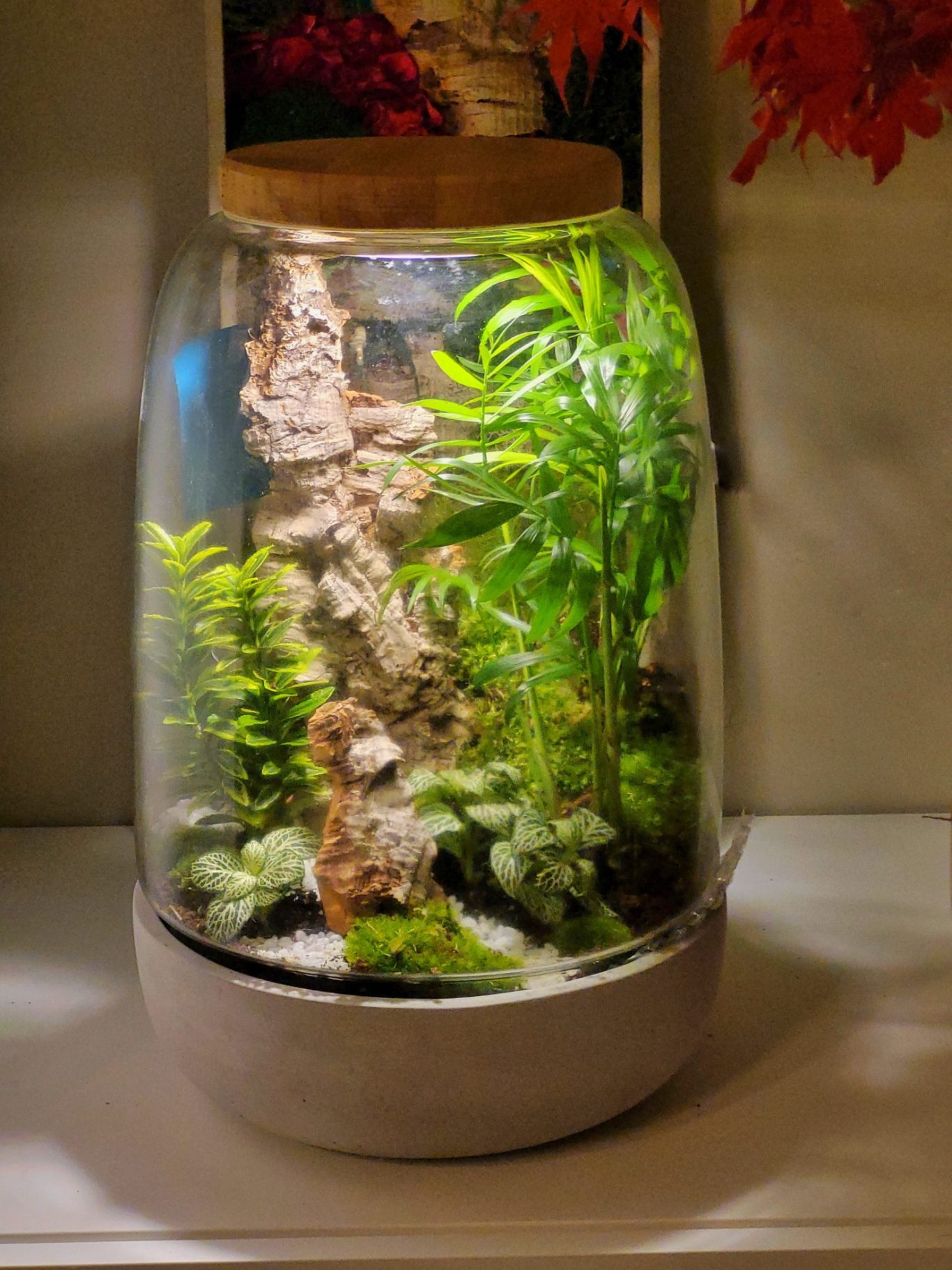 Nos terrariums éclairés allient design et fonctionnalité, créant une ambiance chaleureuse et apaisante.